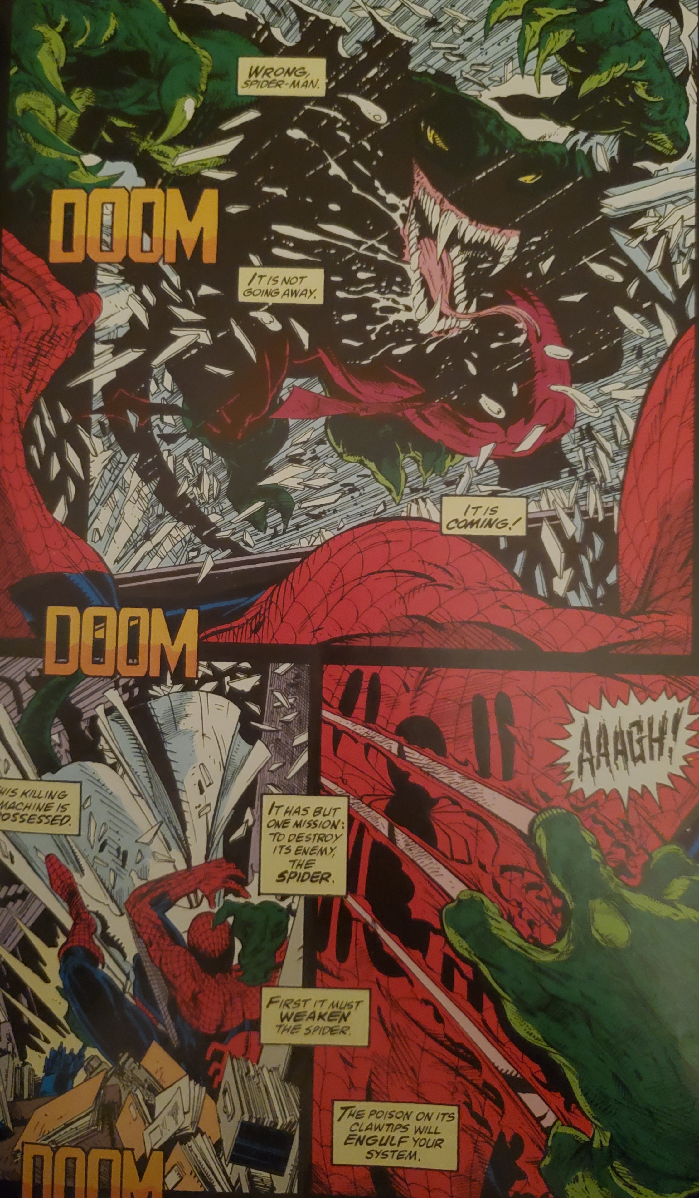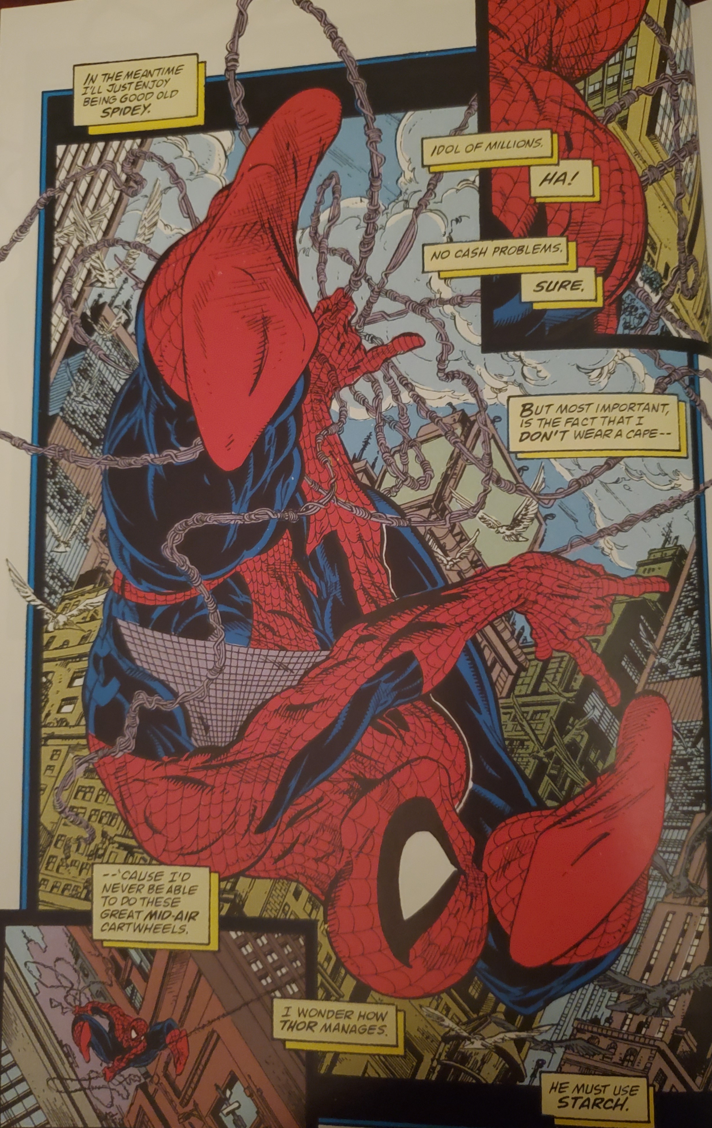 I could go on about McFarlane’s art, but that’s why he is famous. The promise of excellent art combined with his own writing is why Spider-Man sold successfully. However, in terms of legacy, the writing is…what one might expect from someone who is immensely talented in one field, but not another as he shoots for florid.