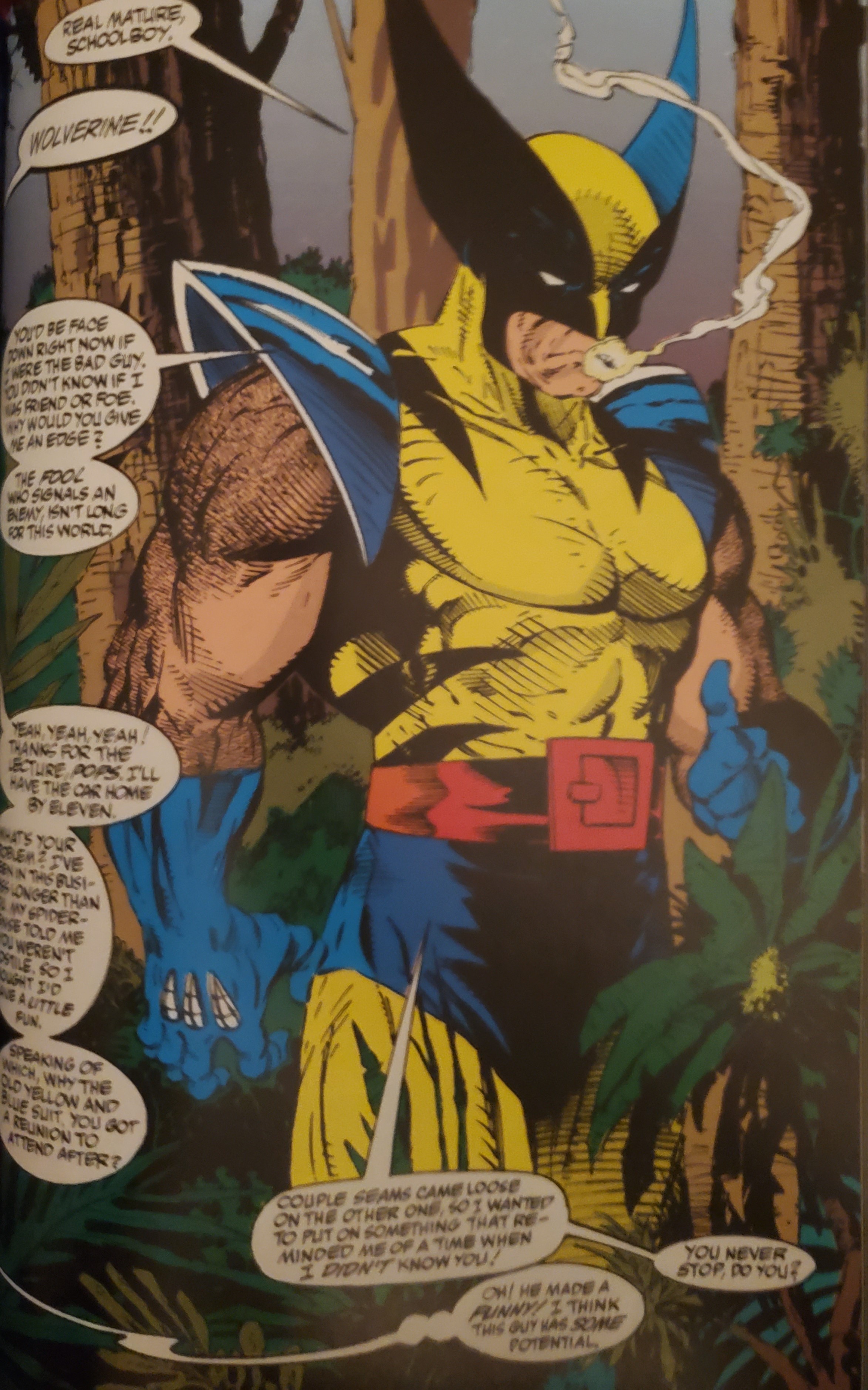 After throwing at his readers cameo appearances from the B-tier of Spider-Man’s rogues gallery, “Perceptions” is an exceedingly boring story about an alleged Wendingo involved with child murders in British Columbia. In other words, this is Wolverine’s home territory, and he, too is on the trail, outshining Spider-Man with his investigative skills in Spider-Man’s own comic book!? Yes, that is how McFarlane treats his titular character by sidelining him.