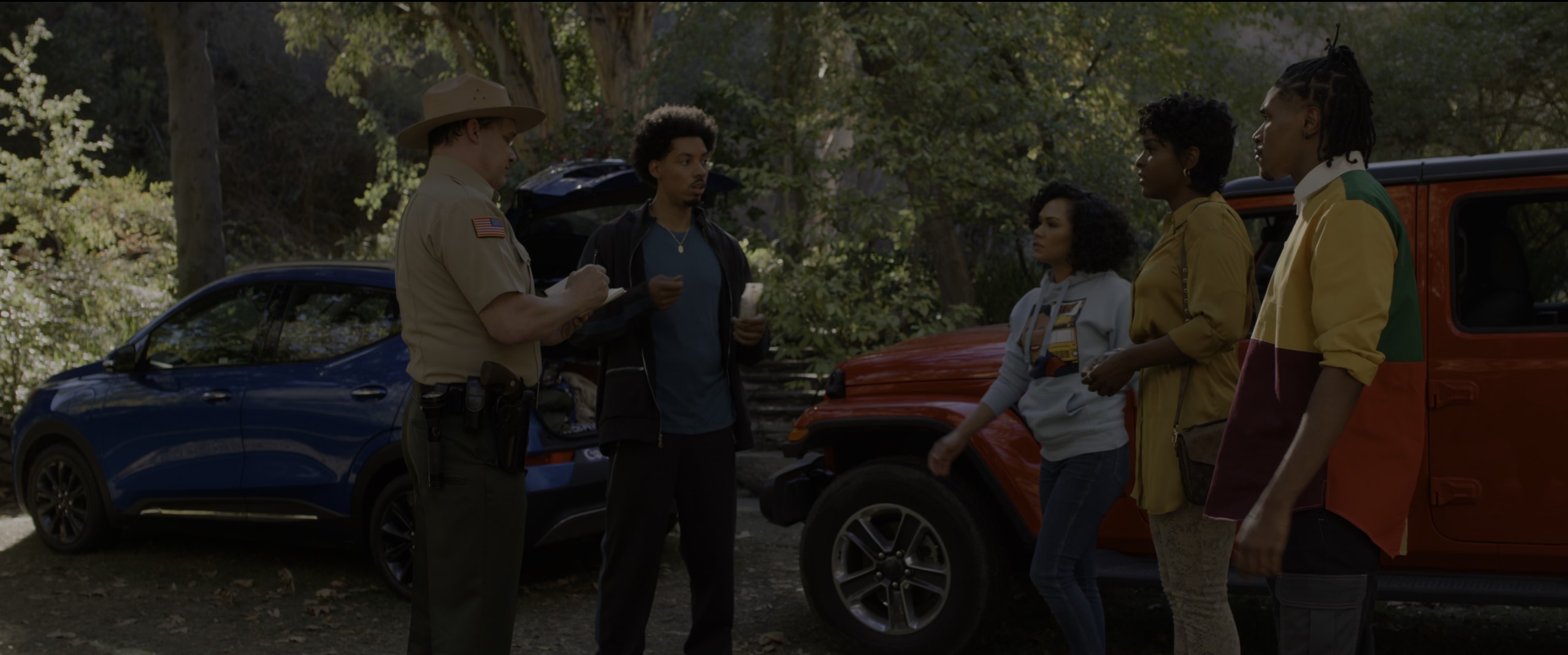 The reformed gangsta, now married to a snowbunny, King (Melvin Gregg), arrives at the wood cabin before everyone else, and the five-O are profiling him before he can even get on the screen. Lagging behind are Shanika (X Mayo), the party girl who is into street pharmacology, and Clifton (Jermaine Fowler), the nerd whose name no one can remember—a 21st-century interpretation of Steve Urkel, complete with bizarre facial expressions when speaking and social awkwardness. A game of Spades breaks out and no one trusts him enough to play. I will return to this.