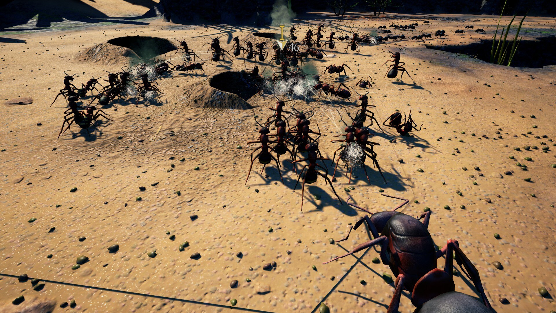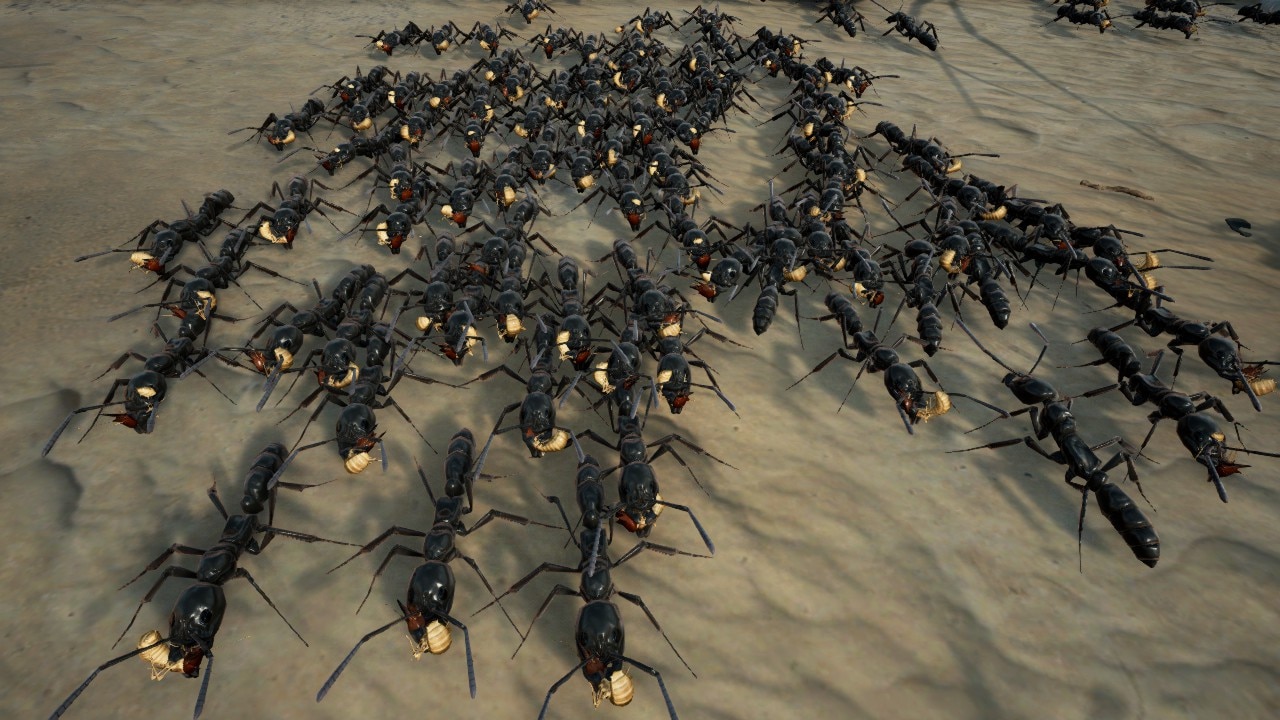 ETOU introduces its five playable species, formica fusca (black ants), formica rufa (wood ants), atta cephalotes (leafcutter ants), solenopsis invicta (fire ant), and megaponera canalis (Metabele ants; capitalized because they are named after the Metabele African tribe), through the in-game formicarium, a hub world where one selects missions; each tier of the formicarium features a new species and at least two playable levels. After meeting the objectives of those missions where the greater the difficulty selected, the greater the reward given, resources accumulate in the formicarium that the ETOU‘s fictional queen species, formica ereptor or “gene thief,” can spawn her own versions of the featured ants.